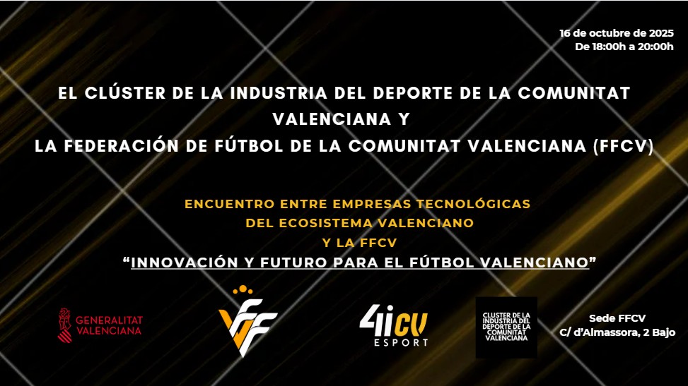 València, 16 de octubre de 2025 — La Federación de Fútbol de la Comunitat Valenciana (FFCV) y el Clúster de la Industria del Deporte de la Comunitat Valenciana (4ICVEsport) celebraron el encuentro Innovación y Futuro para el Fútbol Valenciano, una sesión orientada a conectar a empresas innovadoras del ecosistema valenciano con clubes, entrenadores, gestores y agentes del fútbol autonómico. El objetivo: acercar soluciones tecnológicas y servicios que impulsen la gestión, el rendimiento deportivo y el desarrollo social del fútbol base.