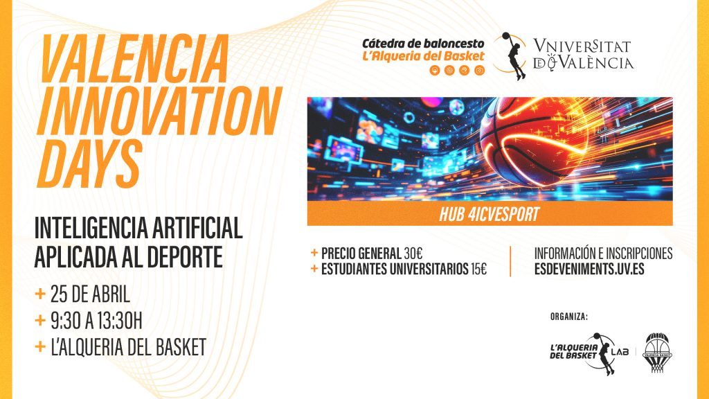 El pasado 25 de abril, L’Alqueria del Basket acogió una jornada centrada en la aplicación práctica de la inteligencia artificial en el deporte, dirigida especialmente a clubs deportivos y entidades con recursos limitados. La iniciativa fue organizada conjuntamente por L’Alqueria del Basket y la Cátedra de Baloncesto de la Universitat de València, en colaboración con el Hub de Innovación en Deporte de la Comunitat Valenciana – 4iCV Esport, reuniendo a empresas, investigadores y profesionales del sector con un objetivo claro: acercar la IA al día a día del deporte base de una forma accesible, comprensible y útil.